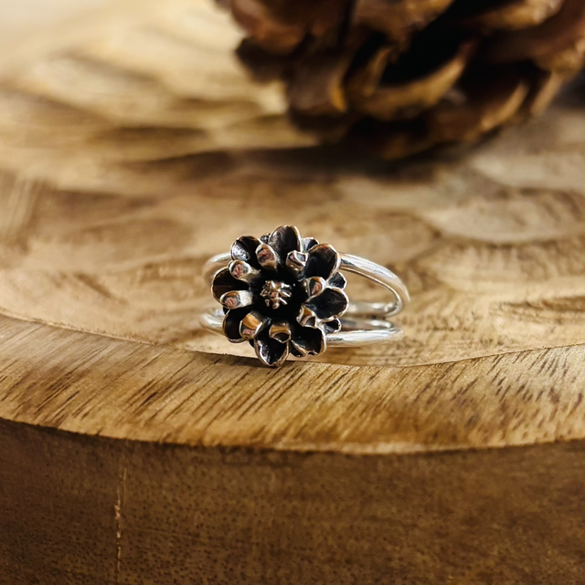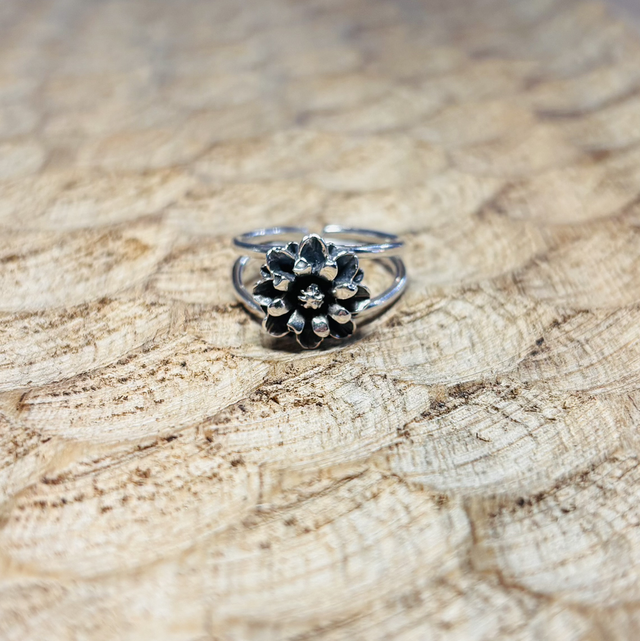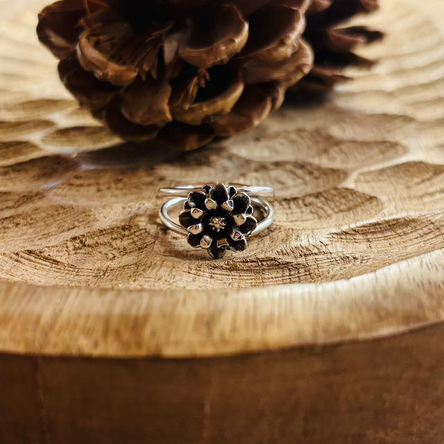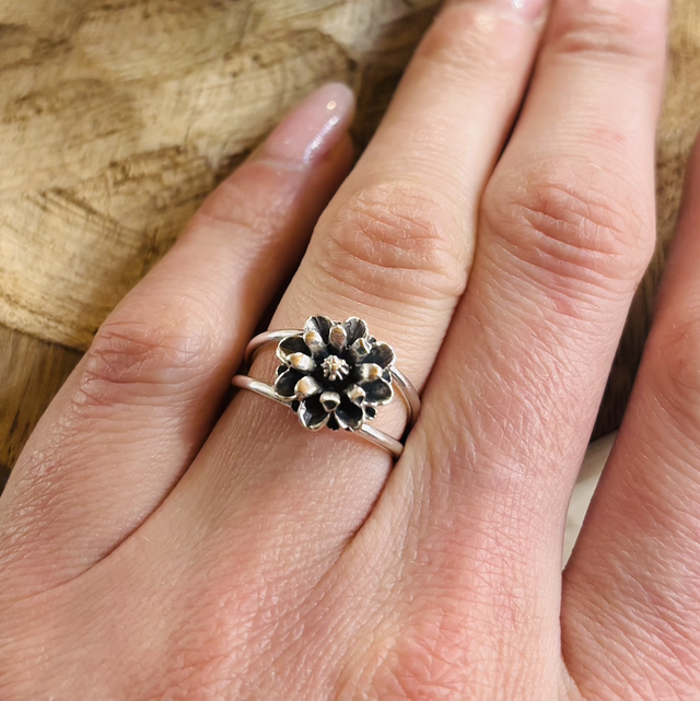 Cette bague délicate en argent 925 met à l’honneur une fleur finement travaillée à la main. Chaque pièce est unique, façonnée dans mon atelier en Savoie.